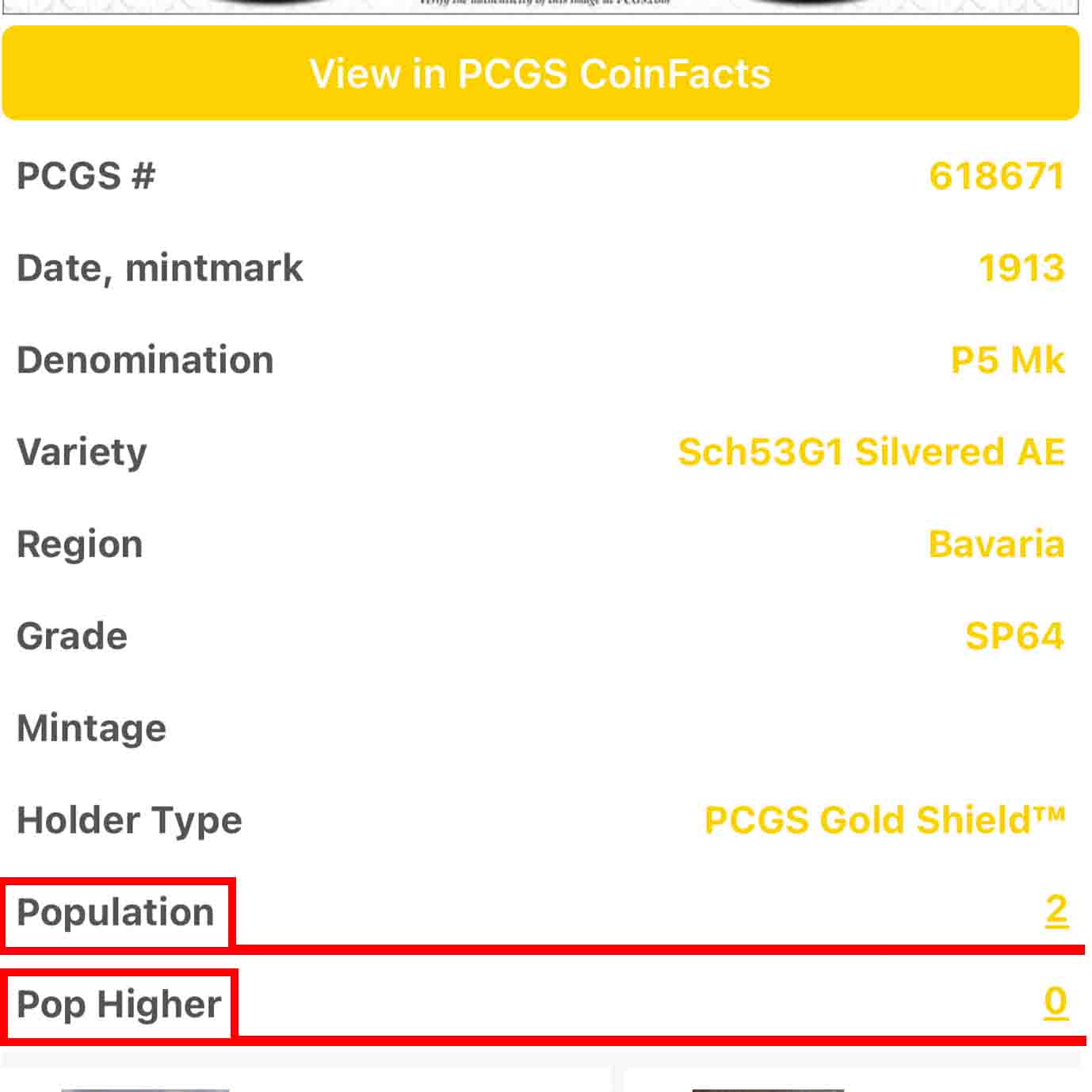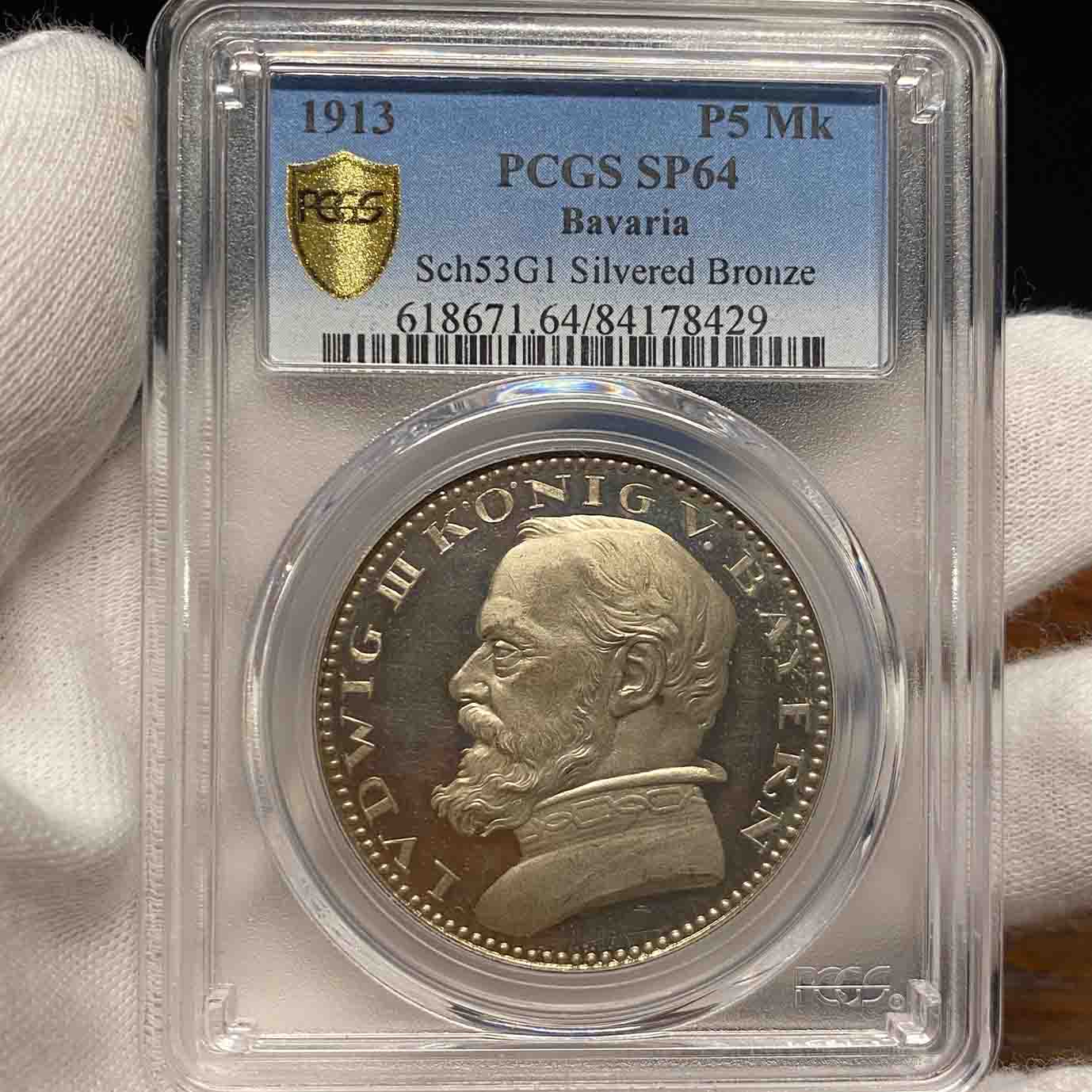 1913 P5Mk Bavaria Sch53G1 Silvered Bronze SP64(PCGS) |