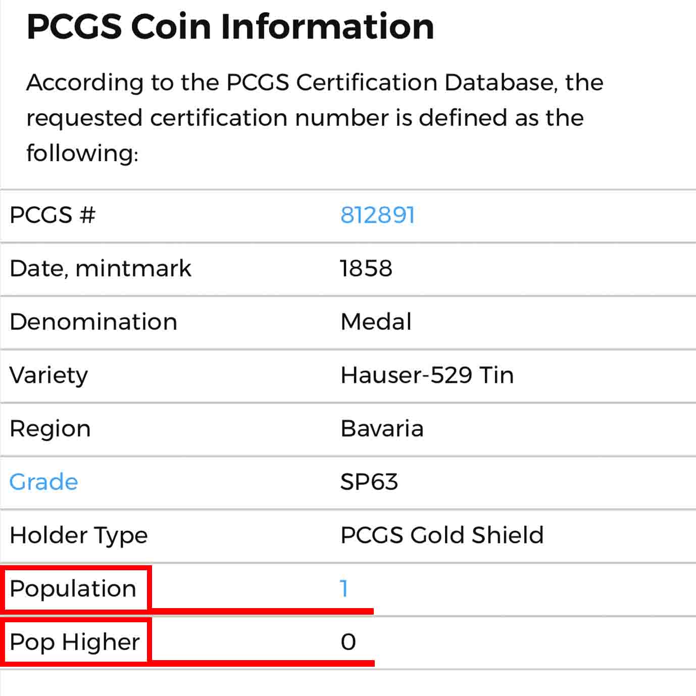 1858 Medal Bavaria Hauser-529 Tin PCGS SP63 (NGC) |